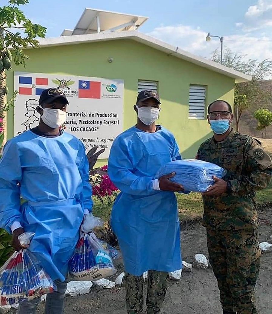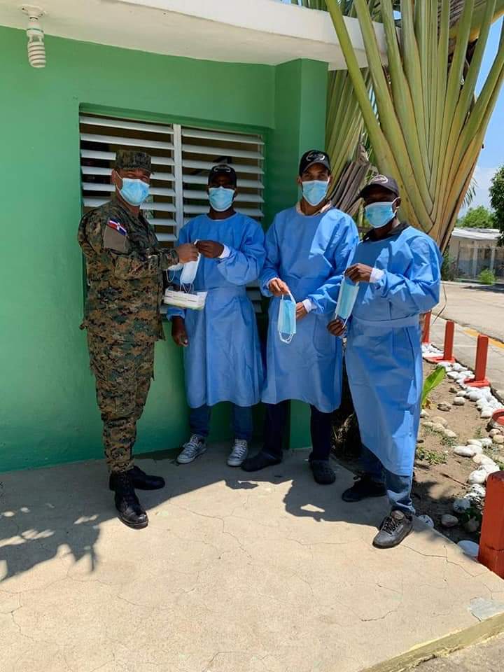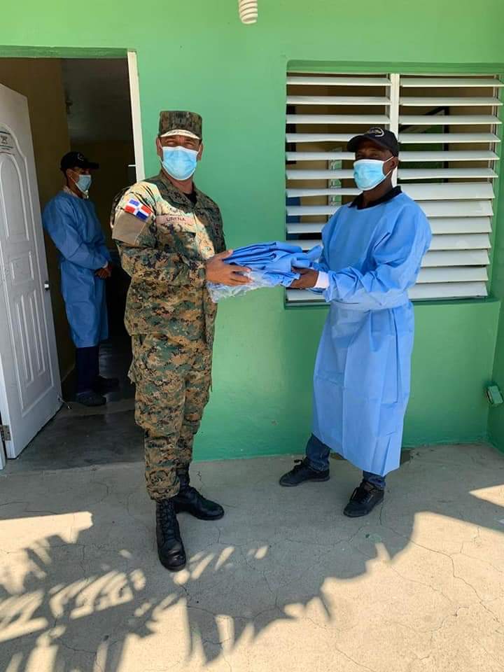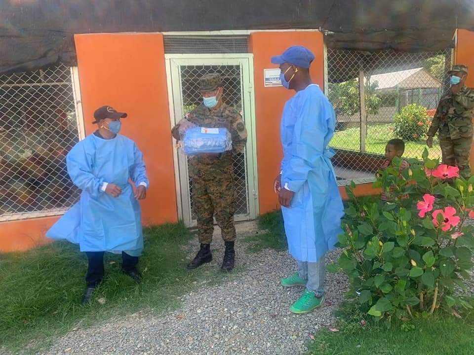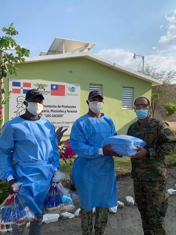 23-04-2020 Esta Dirección General de Promoción de las Comunidades Fronterizas, a través de nuestro Director General, el Coronel Héctor R. Ureña Méndez, realizó un recorrido por los Proyectos Agropecuarios y Forestal que tiene está Dependencia del Ministerio de Defensa, con el objetivo de suministrar insumos médicos como (mascarillas, guantes y batas) para así prevenir que nuestros miembros y sus familiares puedan contagiarse del Covi-19, también les fueron suministradas raciones alimenticias por disposición del Ministro de Defensa el Tte. General Rubén Darío Paulino Sem. ERD., ya que la Provincia de Elías Piña es la única que actualmente no ha sido afectada por esta pandemia en nuestro país.