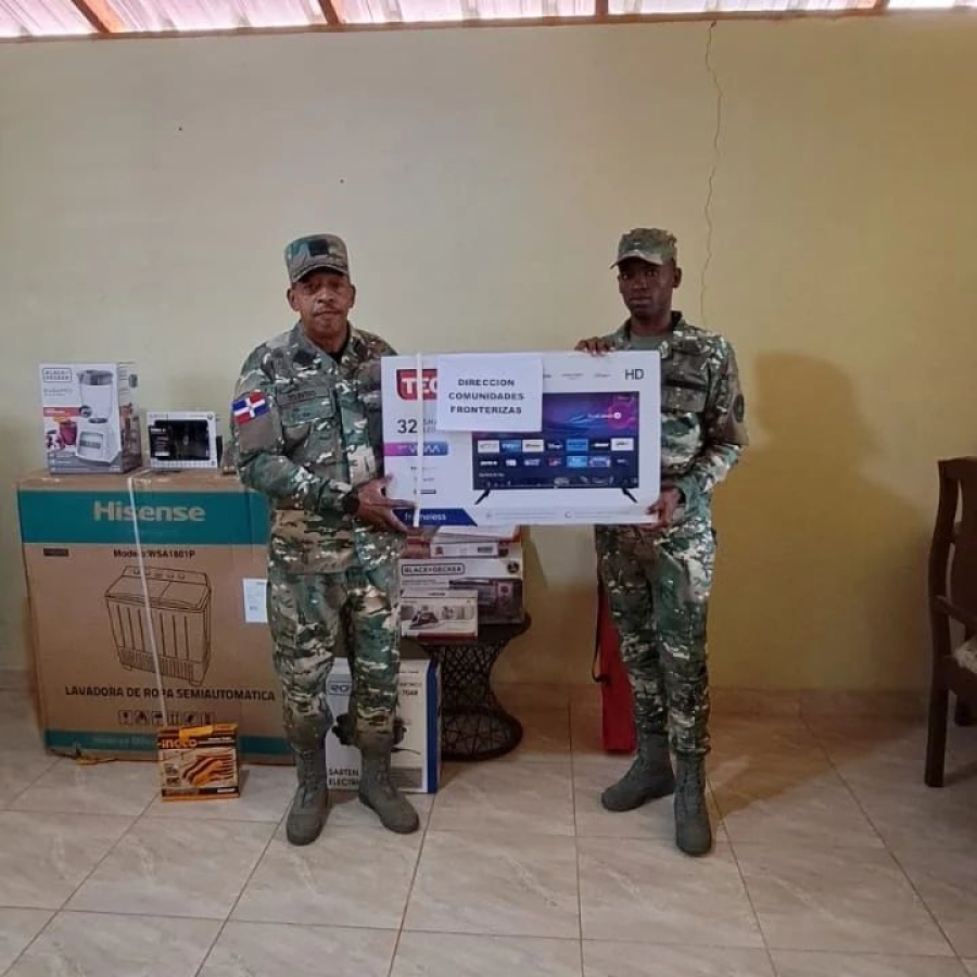 SANTO DOMINGO, D.N. La Dirección General de Promoción de las Comunidades Fronterizas, realiza entrega de regalos, con motivo de la celebración del Dia del Padre, a los miembros de esta institución, dichos obsequios fueron aportados por la Presidenta de la Asociación Dominicana de Esposas de Oficiales de las Fuerzas Armadas (ADEOFA), Sra. Wendy Santos de Díaz.